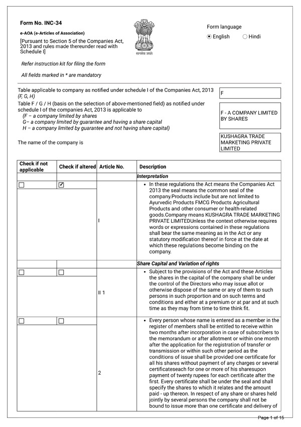 e-Articles of Association