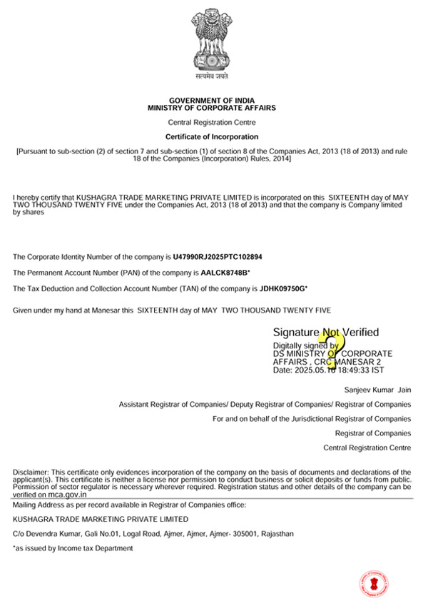 Certificate of Incorporation