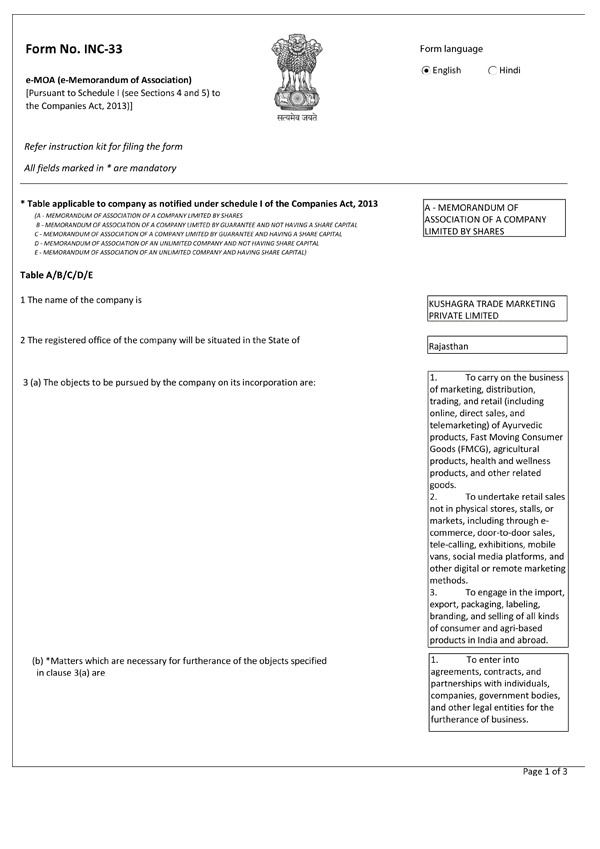 e-Memorandum of Association
